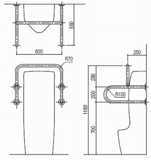 【見積】小便器洋手摺 LB-SV-S1/生地 |