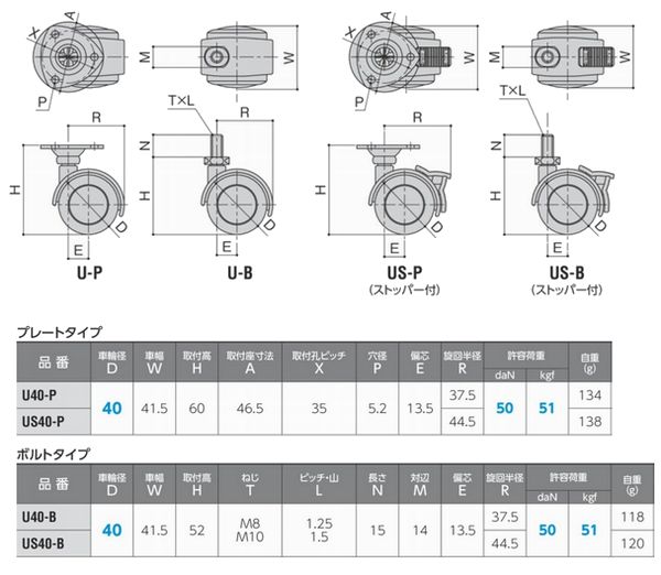 /US | | 商品名 | 双輪自在キャスター | | 材質 | 本体:亜鉛ダイキャスト(ZDC) 車輪:ナイロン(PA) | | 仕上 | 本体:クロームメッキ 車輪:生地 | | 用途 | オフィス機器、医療機器など | | 製品情報 | ・双輪ならではの安定感があります。