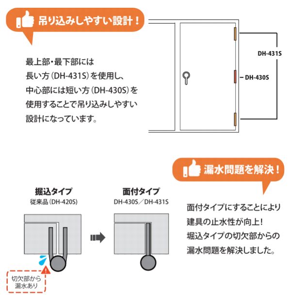 ※ステンレス製で耐久性に優れた重量用の面付丁番です。